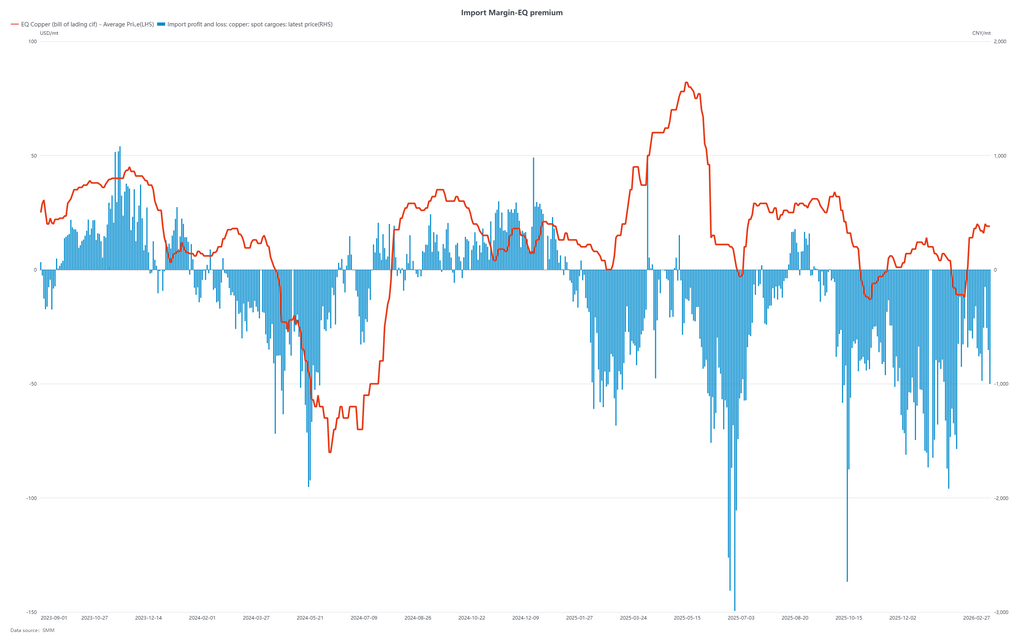 Looking ahead, post-holiday inventory builds exceeded expectations, and under high copper prices, the market will need time to absorb supply. Given that the proportion of 2026 long-term contracts remains relatively low, cargo circulation is expected to show greater volatility than in previous years. Arrivals in March–April are projected to decline, while implicit inventories at ports or bonded zones in regions such as Africa and Southeast Asia may increase.