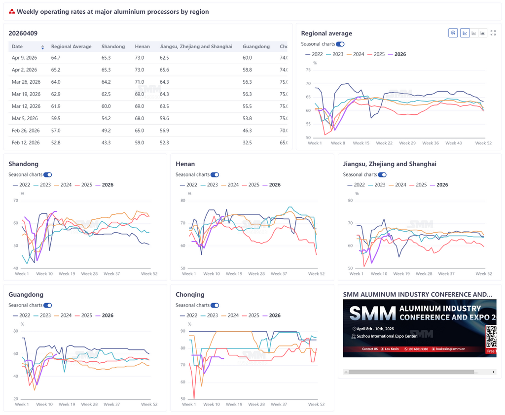 [SMM Analysis] Aluminum Processing Rates Show Slow Recovery, Lag Behind Peak-Season Averages