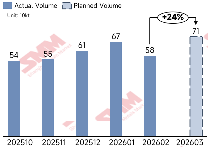 Overall, steel mills will have more producible days in March than in February, so an increase in total construction steel production is normal. In addition, after multiple steel mills complete shipments of winter stockpiling resources before March month-end, they will still need to meet regular market demand, and the market will be in the traditional peak-demand season of “Golden March and Silver April.” Construction steel planned total production in April is expected to still have room to increase.