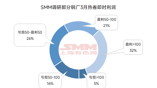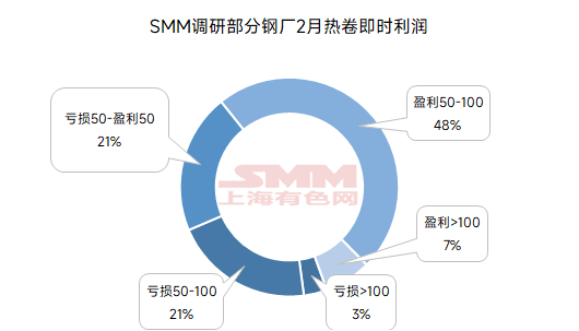According to the SMM survey on real-time profit of steel mills producing HRC, most steel mills currently report real-time profits of 100 yuan/mt or more, showing an improvement compared to early February. Specifically, about 5% of steel mills reported current losses of over 100 yuan/mt, approximately 16% reported losses of 50-100 yuan/mt, 26% were at the break-even point, 21% reported profits of 50-150 yuan/mt, and 32% reported profits of over 100 yuan/mt. Chart-5: Real-Time Profit of HRC Production by Some Steel Mills Surveyed by SMM Over the Past Two Months