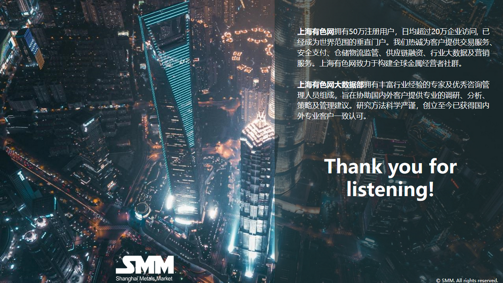 This report is independently created or compiled by SMM Information & Technology Co., Ltd. (hereinafter referred to as "SMM"), and SMM legally enjoys complete copyright and related intellectual property rights.