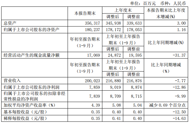 SMM10 March 29: today Baosteel shares released the third quarter of Baosteel, the report shows that Baosteel shares realized a total profit of 5.31 billion yuan in the third quarter, an increase of 51% over the second quarter. In the first three quarters, operating income was 200.023 billion yuan, down 7.77% from the same period last year. Net profit was 7.859 billion yuan, down 12.86% from the same period last year.