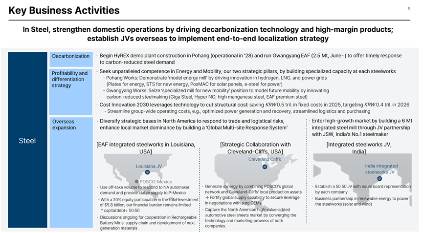 Aprovechando la tecnología para reducir costes estructurales mediante la reducción de costes estructurales impulsada por la tecnología, con objetivos de reducción de costes fijos de 50.000 millones de wones coreanos en 2025 y 40.000 millones de wones coreanos en 2026. Optimización de los costes operativos a nivel de grupo: como la optimización de la generación de energía y la recuperación de calor residual, y la racionalización de la logística y las compras.