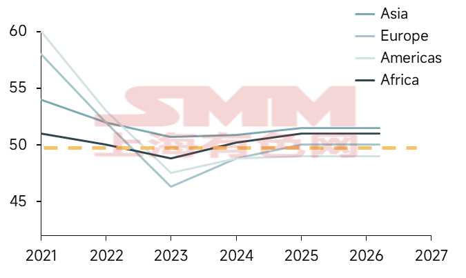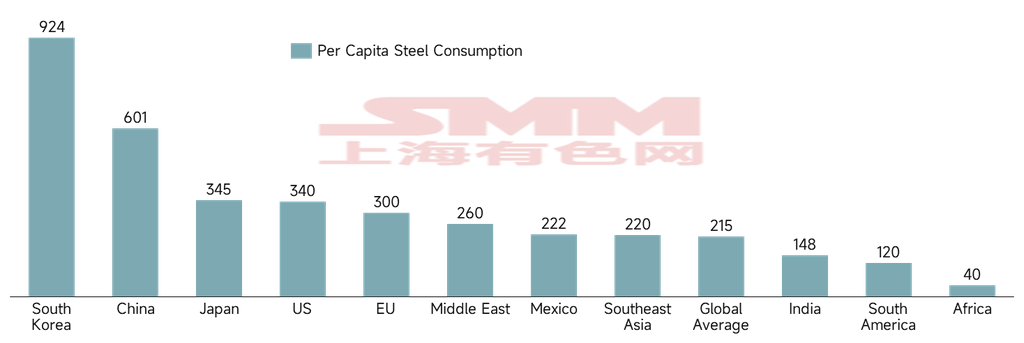 La consommation d'acier par habitant en Asie du Sud-Est, en Inde, au Moyen-Orient, en Amérique du Sud et en Afrique reste relativement faible. Selon worldsteel, la consommation d'acier par habitant en 2024 pour ces cinq régions était respectivement de 220, 215, 260, 120 et 40 kg, l'Amérique du Sud et l'Afrique se situant nettement en dessous de la moyenne mondiale. On peut dire que la compétitivité à l'exportation du secteur manufacturier chinois a répondu aux exigences des marchés émergents en matière d'échelle et d'efficacité durant l'urbanisation/industrialisation, abaissant dans une certaine mesure le seuil de développement. L'espace de demande relativement large hors Chine a également correspondu à la libération des capacités manufacturières chinoises.