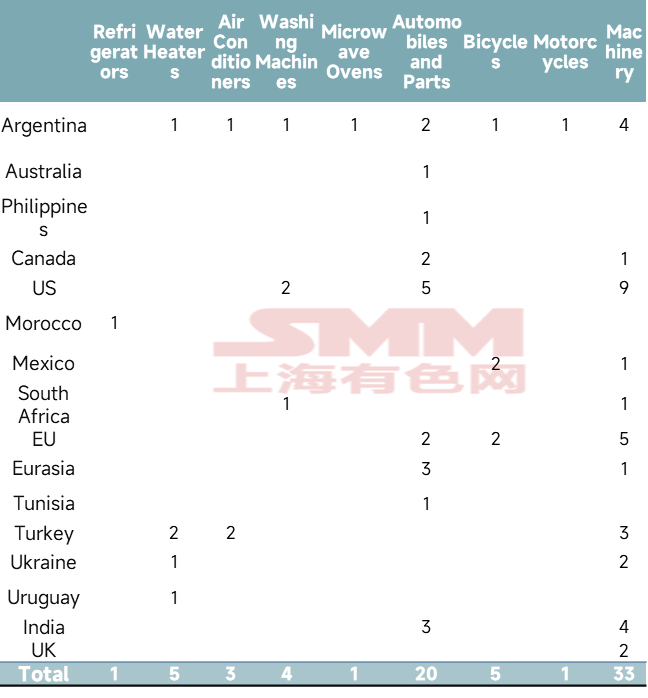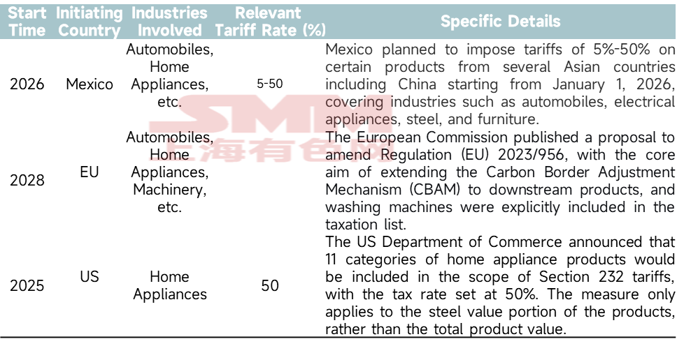 Dans le secteur de l'électroménager, la Turquie et l'Argentine, par le biais de « réexamens au titre de l'expiration » continus, ont prolongé les droits antidumping sur les climatiseurs chinois pendant près de vingt ans, formant une barrière commerciale durable et stable. Dans l'industrie des machines à laver, le secteur faisait face à un siège tridimensionnel combinant unités complètes et pièces détachées, antidumping et taxes carbone, marchés traditionnels et marchés émergents. Les chauffe-eau étaient impliqués dans un nombre relativement important d'affaires, mais parmi celles-ci, les mesures antidumping de l'Uruguay expiraient en 2025, tandis que l'Ukraine était encore en phase d'enquête. Les réfrigérateurs et les fours à micro-ondes faisaient l'objet de moins d'enquêtes antidumping.