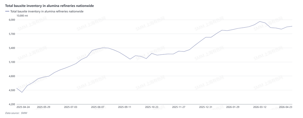 2. Elevated inventory levels will ease market tightness. In 2025, high price incentives drove a substantial increase in bauxite supply, resulting in a notable supply surplus and sharp inventory accumulation.Data from SMM showed domestic port bauxite inventories stood at 21.32 million tons and bonded ore inventories at alumina refineries at about 57.06 million tons by early 2026, with combined inventories reaching 78.38 million tons. Ample inventory buffers will keep actual market conditions looser than theoretical projections.