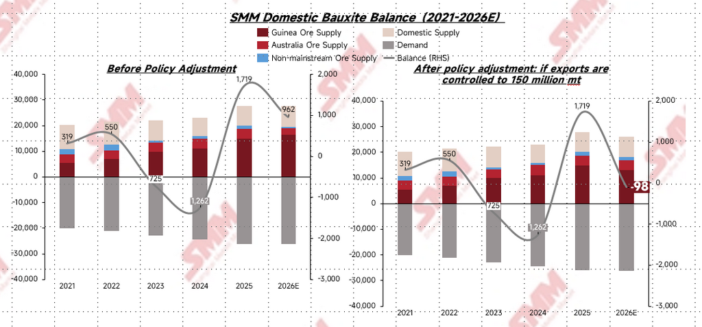 Per market rumors, Guinea’s bauxite exports will be restricted to 150 million tons. Should the final policy be implemented as rumored, based on Guinea’s general bauxite trade flow ratios and historical shipment volumes, SMM estimates that domestic bauxite imports from Guinea will drop to approximately 132 million tons in 2026.
