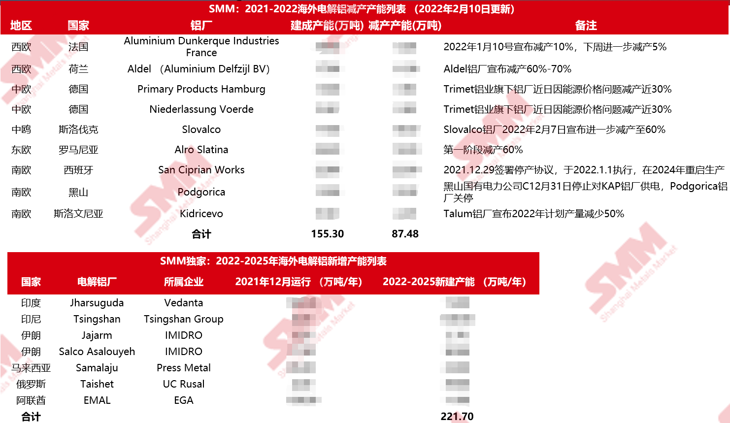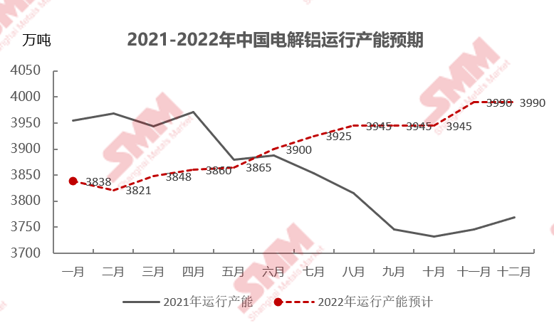 From the current supply and demand situation and downstream demand, SMM expects production in the first quarter of 2022 to decline compared with previous years, inventories will remain low, and the impact of aluminum prices will remain strong for the first time. Throughout 2022 as a whole, the overall operating output growth rate of electrolytic aluminum will not fluctuate much compared with 2021.