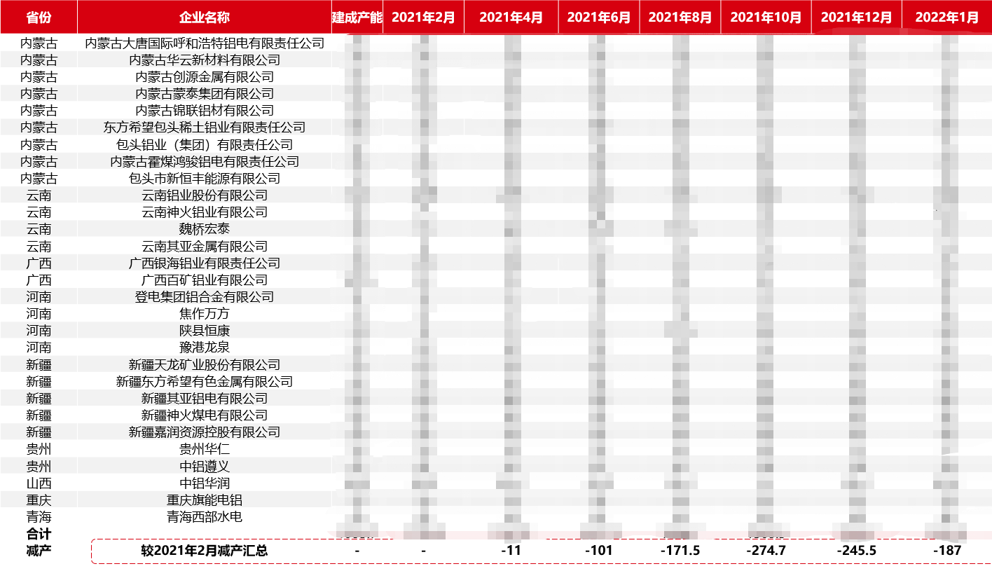 The production capacity of electrolytic aluminum was reduced by more than 2.7 million tons affected by limited electricity, double control and flood in 2021. In the fourth quarter, with the easing of power tension in some areas, some enterprises resumed production and the operating capacity increased slowly. With the lifting of power cuts, Inner Mongolia gradually resumed production at the end of 2021 and basically returned to full production in January. Although Yunnan is currently in a dry period, it has gradually resumed production with the support of Electroweb.