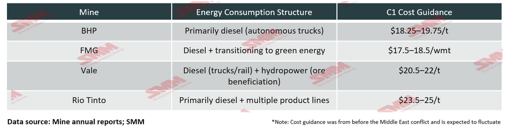 FMG Group (Fortescue): Area produksi inti FMG juga terletak di Pilbara, sama seperti BHP, tetapi terdapat beberapa perbedaan dalam struktur biaya. FMG mencapai rekor volume pengiriman bijih besi tahunan sebesar 198,4 juta ton pada FY2025, dan biaya C1 hematitnya turun menjadi $17,99 per wet metric ton (wmt); ini merupakan penurunan biaya tahunan pertama perusahaan sejak FY2020, sehingga memungkinkannya mempertahankan posisi sebagai produsen berbiaya rendah di industri. Proyek konsentrat magnetit Iron Bridge milik FMG (kadar produk sekitar 67% Fe) terus meningkatkan kapasitasnya, yang akan meningkatkan konsumsi listrik sekaligus memperbaiki bauran produk, sehingga membuat struktur energi keseluruhan FMG menjadi lebih kompleks. Di tingkat strategi energi, tata letak FMG adalah yang paling agresif di antara empat tambang besar. Perusahaan mengumumkan perjanjian kemitraan senilai $2,8 miliar dengan Liebherr untuk bersama-sama mengembangkan peralatan tambang tanpa emisi, mencakup sistem baterai listrik, dan batch pertama truk otonom telah memasuki fase penerapan. Namun, FMG juga mengakui biaya dari pergeseran strategisnya—perusahaan memutuskan untuk menunda proyek hidrogen hijau Arizona dan proyek Gladstone PEM50, dengan alasan kemunduran dukungan kebijakan AS untuk energi hijau dan lambatnya perkembangan pasar energi hijau global. Untuk saat ini, eksposur diesel FMG serupa sifatnya dengan BHP, dan mekanisme transmisi fluktuasi harga energi terhadap biaya C1-nya sangat mirip.