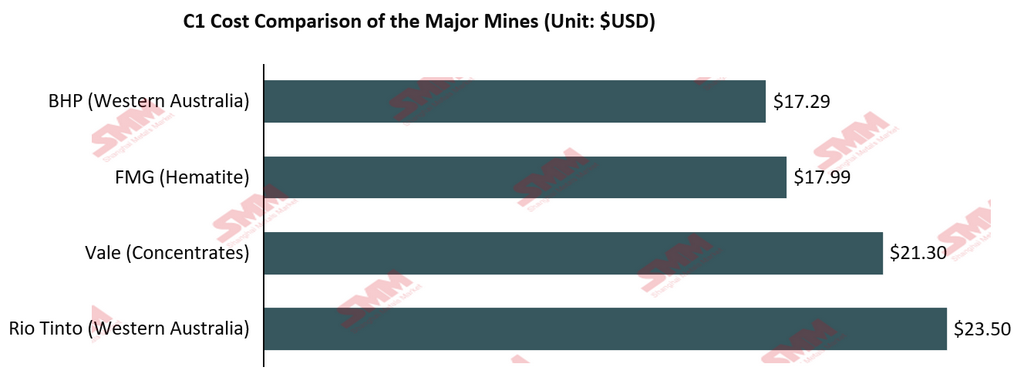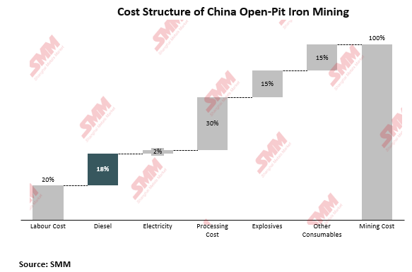 Setiap kenaikan $10 pada harga minyak mentah diperkirakan akan menaikkan biaya penambangan per ton tambang bijih besi besar rata-rata sebesar $0,3, sementara biaya untuk tambang kecil diperkirakan naik sekitar $2,85. Tambang kecil berbiaya tinggi, terutama produsen konsentrat besi, akan sangat rentan ketika menghadapi guncangan biaya, dan tambang dengan jenis produk berbeda akan menghadapi tingkat dampak yang bervariasi.