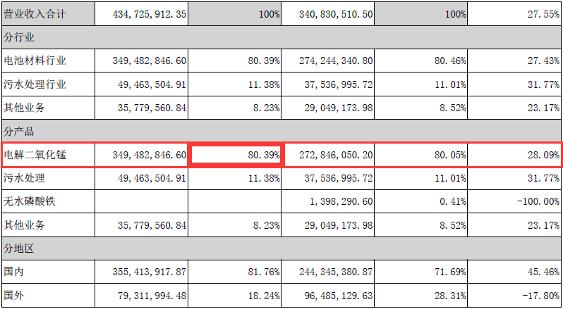 Xiangtan Electrochemical Electrolytic Manganese dioxide products accounted for nearly 80% of the total revenue in the first half of 2018: