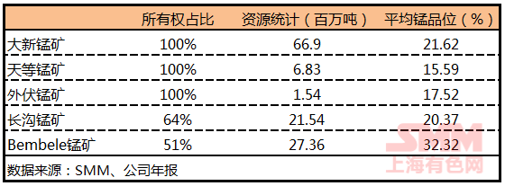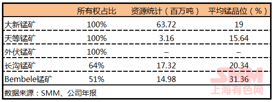 Details of the grade of five manganese ore resources: (as of December 31, 2017)