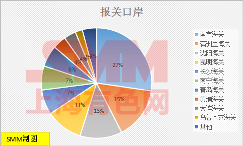 Judging from the customs declaration ports, Nanjing Customs (27%), Manzhouli Customs (15%) and Shenyang Customs (13%) account for half of the lead concentrate circulation. Kunming Customs, Changsha Customs, Nanning Customs and Qingdao Customs have more than 5% of the lead concentrate in circulation.