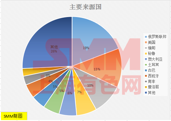 In terms of major source countries, in the import trade of lead concentrate, the main source countries include the Russian Federation (19 per cent), the United States (13 per cent), Myanmar (10 per cent), Peru (7 per cent), Australia (6 per cent) and Turkey (5 per cent).