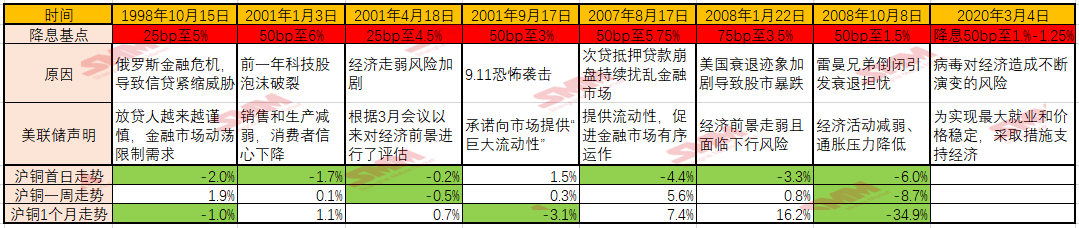 SMM3, March 4: as the epidemic poses an evolving risk to the US economy, the Federal Reserve cut its benchmark interest rate by 50 basis points and IOER by 50 basis points to 1.1 percent on the evening of March 3, Beijing time. As a result, copper fell significantly in night trading, from $5682 / tonne to $5660 / tonne at the close, down $22 / tonne for the time being, but what is the trend in the future? we can refer to the trend after previous Fed emergency interest rate cuts.