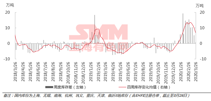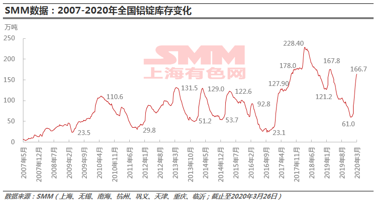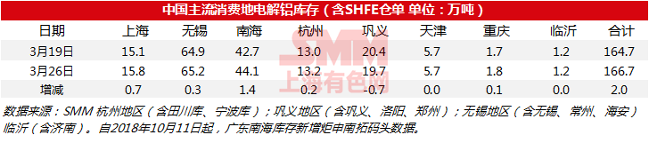 Weekly inventory growth slowed and electrolytic aluminium stocks rose to 1.667 million tonnes on March 26.