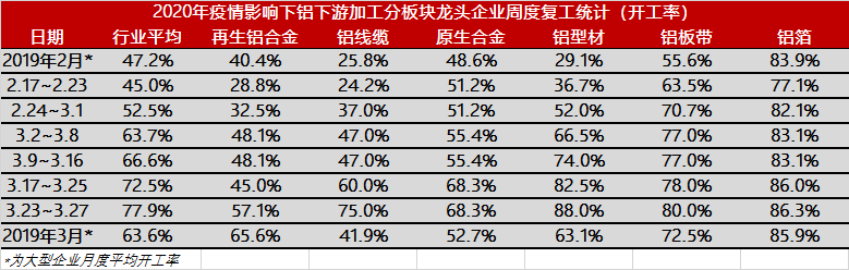From the start point of view, the average downstream operating rate increased by 5.2 percentage points per week, the increase is the same as last week. Among them, from a sub-regional point of view, the start of construction in East and South China continues to maintain relatively rapid growth, and the weekly increase of processing enterprises in this region is more than 5 percentage points. According to different types, the start-up increase of recycled aluminum / cable / profile enterprises is the most obvious, and the weekly increase is also more than 5%. It is worth noting that the impact of the overseas epidemic continues to increase, and export orders are likely to decline significantly in April. At present, the bright spot of consumption in the aluminum processing industry lies in domestic aluminum profiles and cables. The increase in the start of recycled aluminum is mainly alleviated by the shortage of raw materials replenished by raw aluminum, but its start is still limited by weak consumption. It is expected that there will still be a small increase in the downstream operating rate of aluminum next week, mainly due to the continued recovery of domestic demand such as profiles / plates and strips.