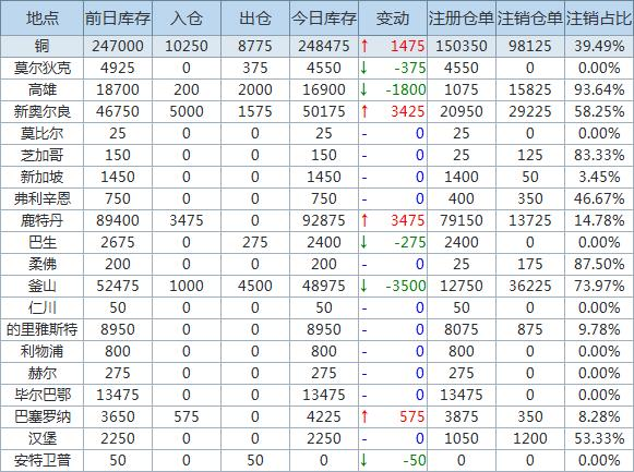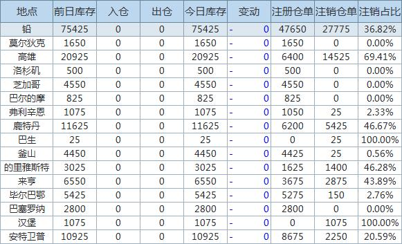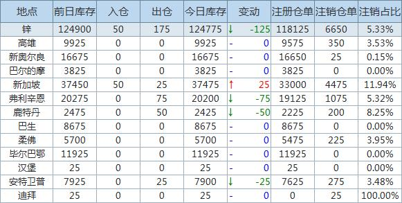 Zinc inventory decreased by 125 tons, write-off warehouse receipt increased by 0.38%