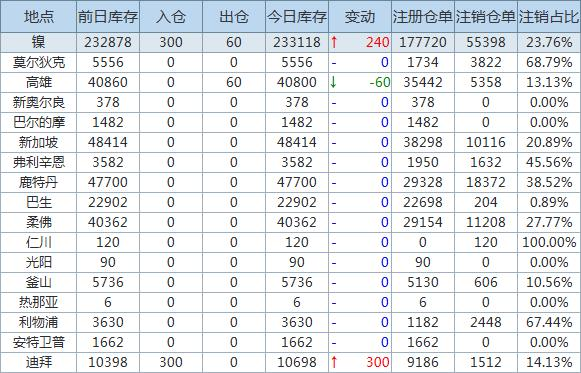 Nickel inventory increased by 240 tons, Dubai Warehouse contributed increase