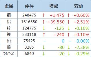 On June 16th, LME copper inventory increased by 1475 tons, aluminum inventory increased by 39550 tons.