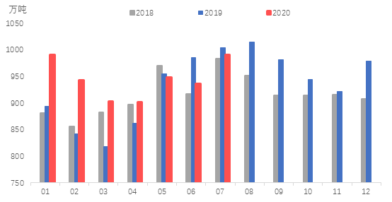 Foreign trade: the export volume of hot-rolled coil in July was 225000 tons, 25500 tons less than that of the previous month, or 10.2% lower than the previous month.