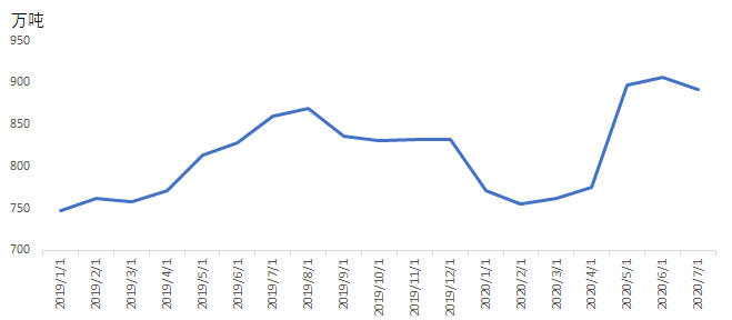 According to SMM research, in July, the blast furnace steel mill, which mainly produces building materials, produced 9.0654 million tons of thread, down 2% from June, while the reel produced 2.694 million tons, an increase of 0.67% from the previous month. In addition, before the global epidemic can not be effectively controlled, domestic steel prices are still high, and the export volume of building materials from steel mills only maintains the basic level, which is basically unchanged from last month.