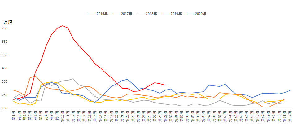 As of July 16, the country's total inventory of building materials was 10.7401 million tons, with a month-on-month ratio of + 0.6%, compared with the same period last year. Seasonal interference has not faded, central China, East China, southwest and other areas are still shrouded in overcast and rainy weather, terminal demand continues to be suppressed, so the thread inventory is still in a state of accumulation. However, after South China took the lead in "getting rid of difficulties", the strong replenishment of local demand is an important argument to prove the objective existence of the demand for quick work. The urgent demand for work is more urgent than in previous years, and the terminal just needs a good year-on-year performance, which is an important reason why the current inventory growth continues to narrow year-on-year (this week, the thread pool growth rate narrowed by 3 percentage points year-on-year).