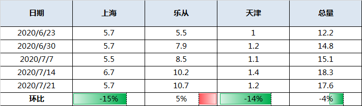 SMM Steel July 21, this week's mainstream market resources are expected to arrive at 176000 tons, 7000 tons less than last week. In terms of segmentation, the volume of goods arriving in both the Shanghai market and Tianjin market has decreased a little, but the volume of goods from the market is still increasing.