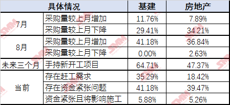 On the one hand, 38.2% of the terminal sample enterprises said that steel purchases will increase in August compared with July. In terms of sub-industry, 41.2% of infrastructure enterprises said they had this expectation, while 36.8% of construction enterprises said they expected the same increase in procurement volume next month.
