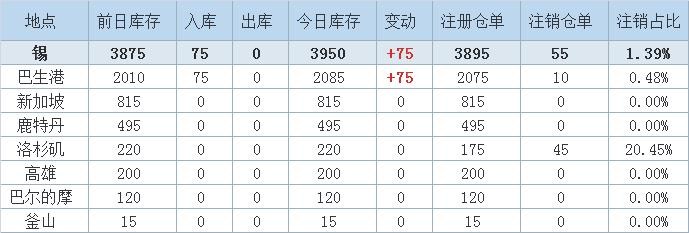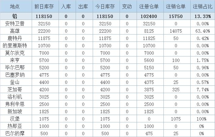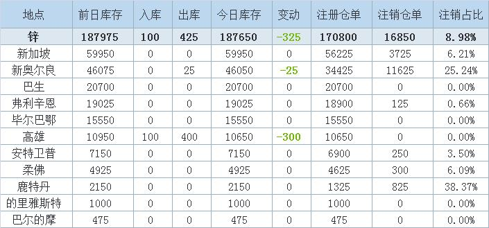 Zinc inventory decreased by 325 tons the largest drop in Kaohsiung warehouse