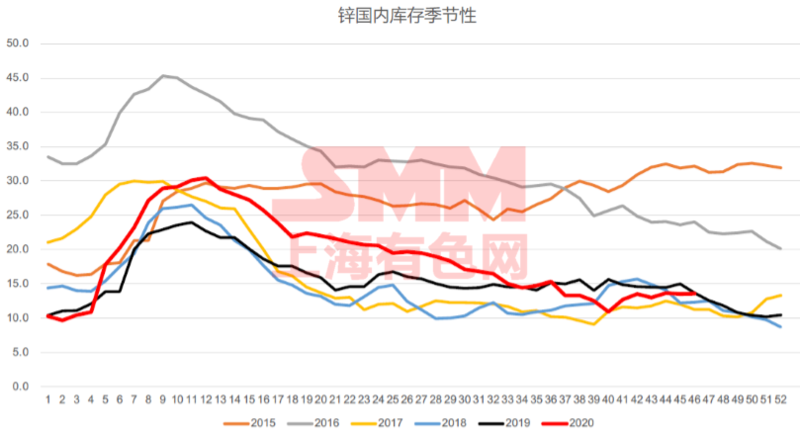 This year, the raw material inventory of domestic zinc smelters is basically at a low level in recent years. Port inventories fluctuate around 150000 tons, which is not high compared to the 14-15 high.