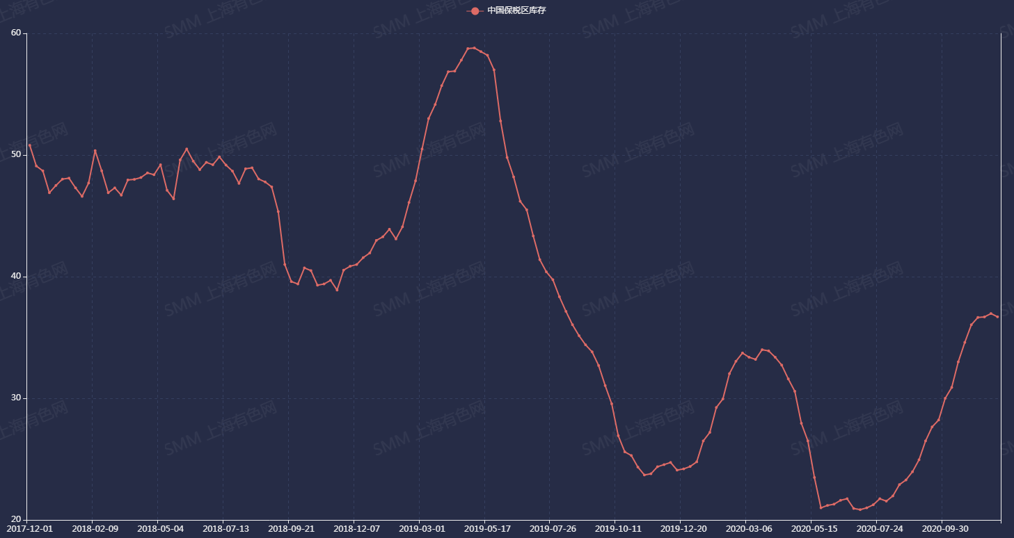 Copper inventory in China Free Trade Zone (in 10,000 tons)