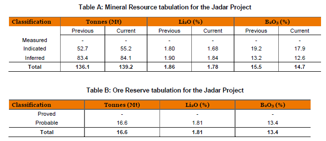 SMM12 translation: Rio Tinto (Rio Tinto) recently disclosed to the Australian Stock Exchange (ASX) the latest resources of its 100 per cent held Jadar lithium project in western Serbia, which has estimated ore reserves of 16.6 million tons, including 1.81 per cent lithium oxide and 13.4 per cent boron oxide, as follows: