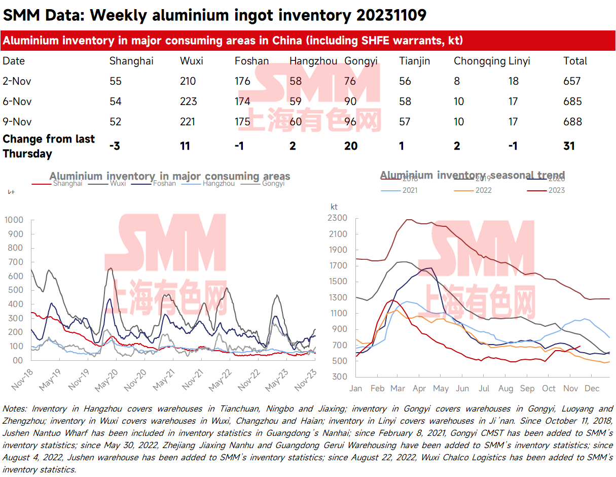 6063 aluminium billet inventory in major Chinese consumption areas (kt)