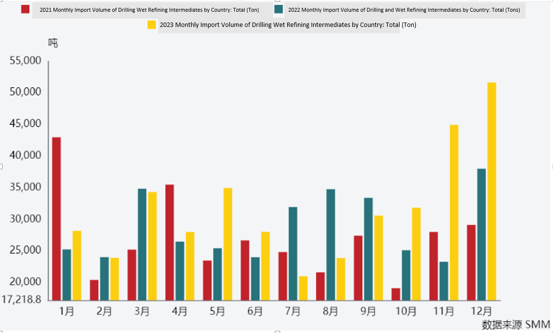In terms of countries, the Democratic Republic of the Congo was still the main importer in December, with an import volume of about 17,700 metal tons (converted at 35% grade) and an average import price of US$15,483 per metal ton, accounting for about 98% of imports.