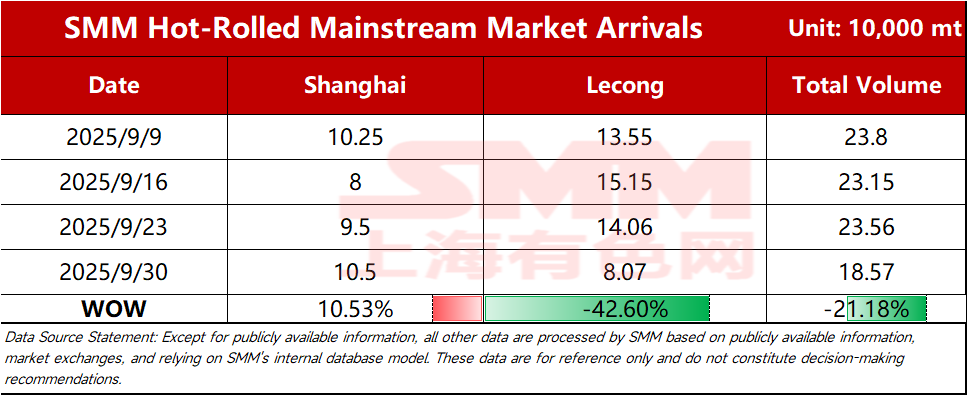 SMM Steel, September 30 – According to SMM statistics, the estimated total shipments in mainstream markets this week were 185,700 mt, down 21.88% WoW. By market: