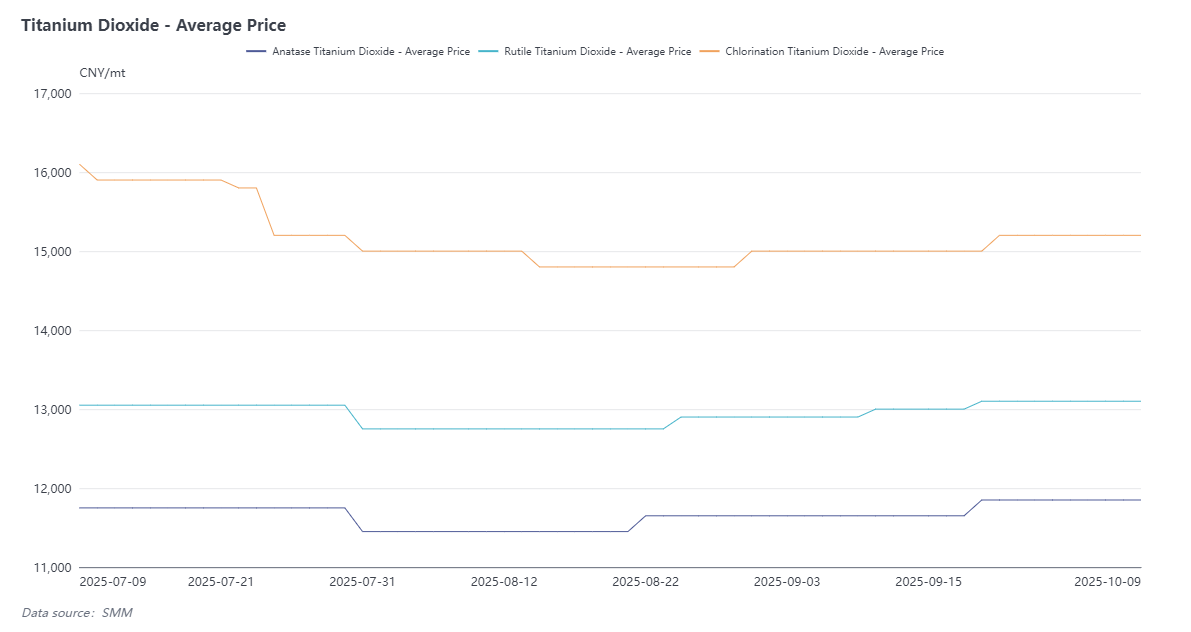 In September, the quotation for anatase titanium dioxide was 11,700-12,000 yuan/ton, with an average price of 11,850 yuan/ton; the quotation for rutile titanium dioxide was 12,800-13,400 yuan/ton, with an average price of 13,100 yuan/ton, and the average FOB price was USD 1,875/ton; the domestic quotation for chloride process titanium dioxide was 14,700-15,700 yuan/ton, with an average price of 15,200 yuan/ton, and the average FOB price was USD 2,125/ton.