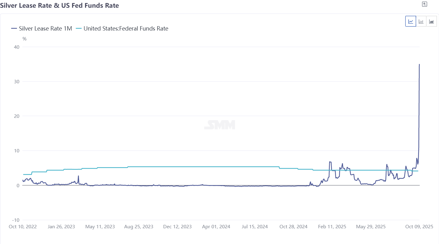 Since March 2025, the London 1-month silver lease rate has risen slightly multiple times, with its operating center significantly higher than the near-zero conventional levels seen in other years. On one hand, concerns over Trump's tariffs have raised expectations of a correlation between London silver ingots being shipped to the New York market; on the other hand, ETF buying exceeding selling has led to a shortage of freely circulating physical silver ingot inventories held by banks. Beyond the New York market, according to overseas traders, since mid-to-late September, banks in Singapore have also encountered difficulties in leasing silver.