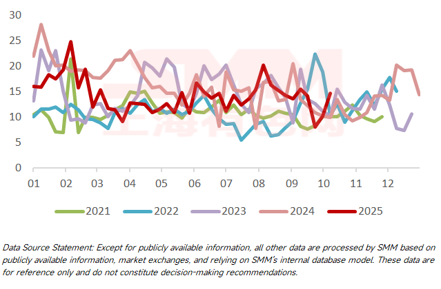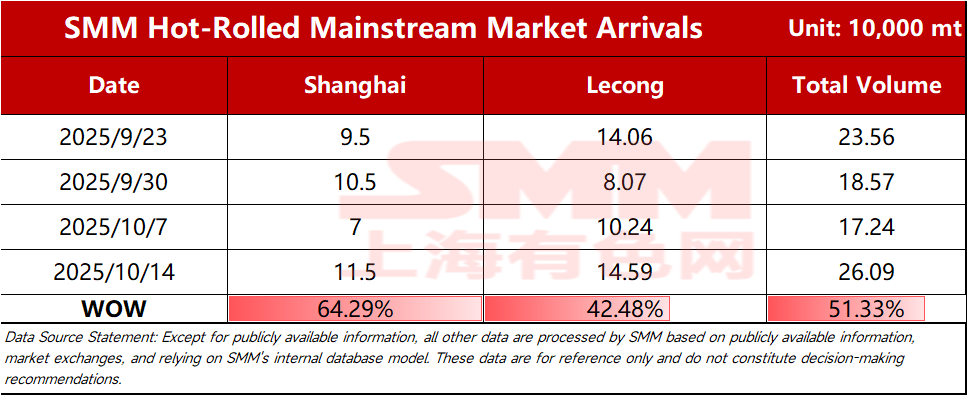 SMM Steel, Oct 14 – According to SMM statistics, the estimated total resource shipments in mainstream markets this week were 260,900 mt, up 51.33% WoW from last week’s shipment level. By market: