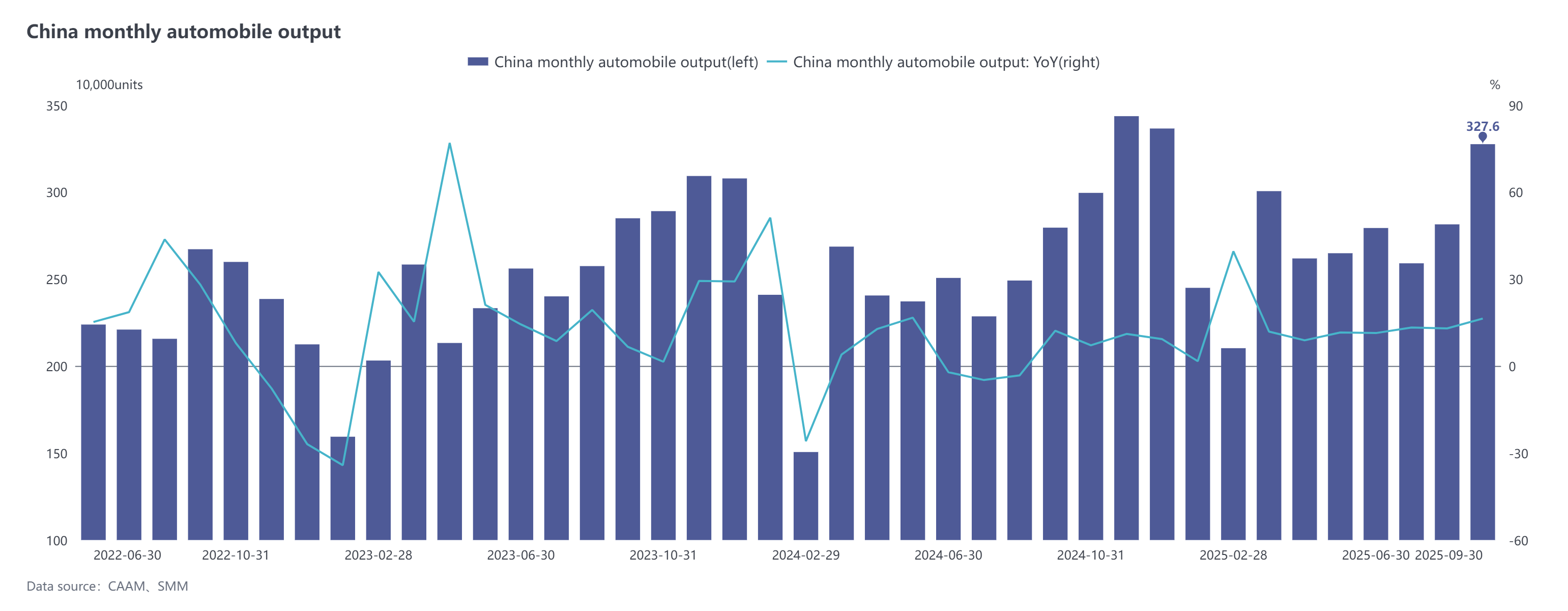 With improved end-use consumption in sectors such as automobiles, the operating rates of secondary aluminum plants, especially large ones, rebounded significantly, with orders related to aluminum liquid performing notably well. According to CAAM statistics, automobile production and sales in September reached 3.276 million units and 3.226 million units, up 16.4% and 12.9% MoM, and up 17.1% and 14.9% YoY, respectively.