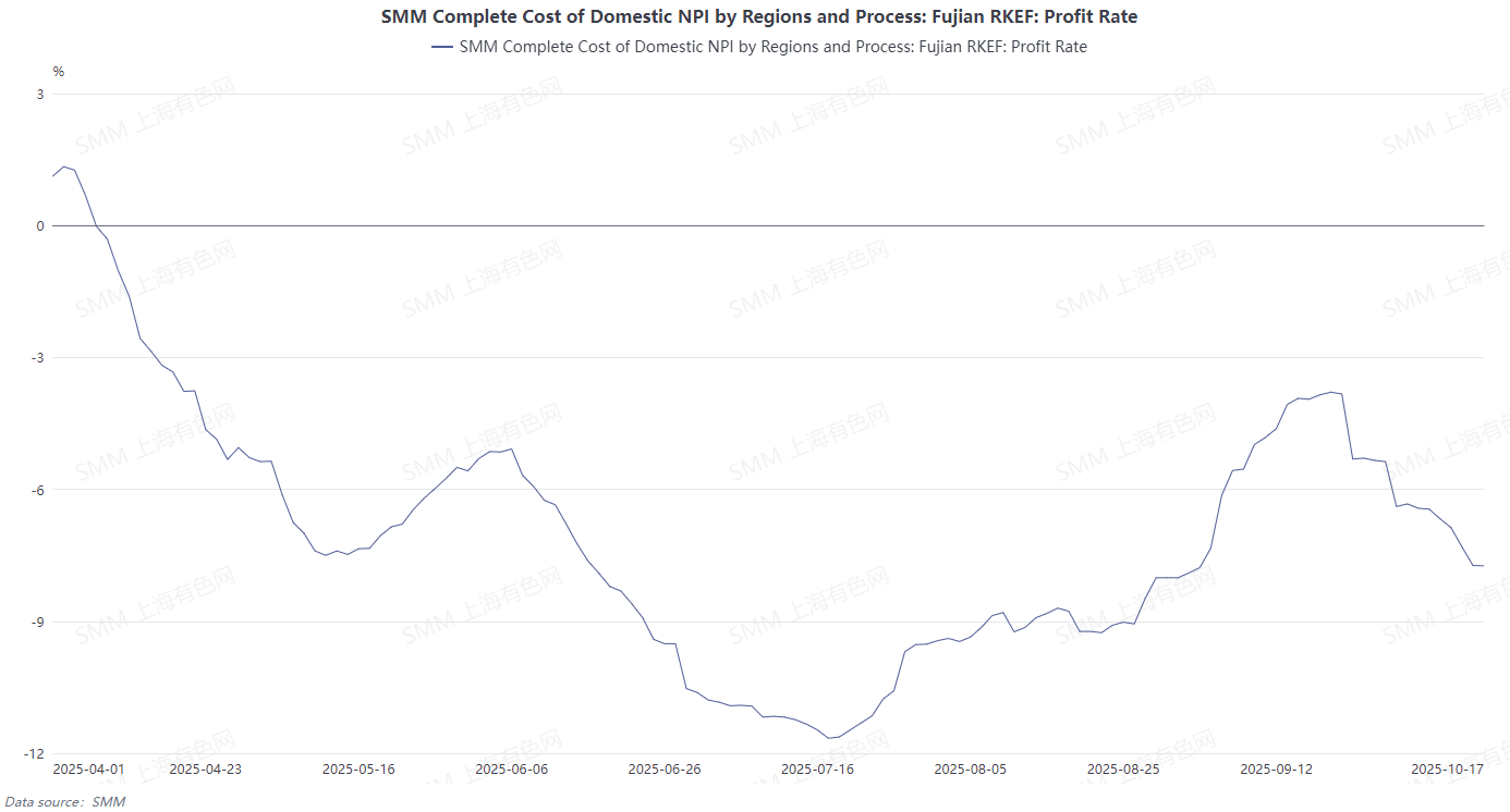 Based on nickel ore prices from 25 days ago for calculating the cash cost of high-grade NPI, smelter profits declined this week. Raw material side, Philippine ore prices are expected to rise, Indonesian ore prices increased WoW, and auxiliary material prices rose again, pushing up high-grade NPI costs. Meanwhile, consecutive declines in high-grade NPI prices led to lower smelter profits. Looking ahead to next week, raw material side, auxiliary material prices rose again, Philippine nickel ore prices are expected to potentially increase, and high-grade NPI prices are projected to continue falling, suggesting smelter profits will remain under pressure.