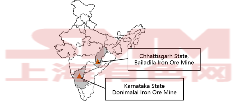 The Donimalai mining area is located in Karnataka state in southwestern India. The region is situated in an industrial belt with good transportation and infrastructure conditions, close to New Mangalore Port, facilitating ore transportation and domestic steel mill supply.