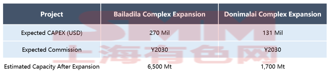 Bacheli Complex: The expansion project includes two main components: a beneficiation plant with 4 million tons capacity, a pellet plant located in Nagarnar with annual capacity of 2 million tons, and a 130-kilometer transport pipeline connecting the Bacheli complex and Nagarnar steel plant. The overall goal is to expand capacity from the current 18 million tons to 28 million tons before 2030, and reach 35 million tons by 2032.