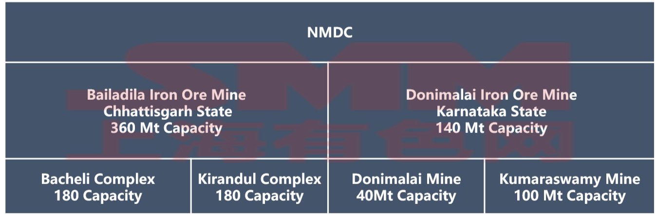 The National Mineral Development Corporation ( NMDC ) ,established in 1958, is a state-owned enterprise controlled by the Indian Ministry of Steel (60.79%). It is India's largest iron ore supplier and one of the lowest-cost producers in the world. Iron ore production reached 44 million tons in fiscal year 2024. NMDC aims to reach 67 million tons of iron ore by 2025 and 100 million tons by 2030. NMDC have four mining areas whichlocated in the states of Karnataka and Chhattisgarh. In addition to iron ore, the company explores and mines copper,phospate rock, limestone, magnesite, tungsten, beach sand, and other commodities. The company also operates Southeast Asia's only diamond mine. In addition to its operations in India, NMDC also mines iron ore, gold, and other base metals in Australia through its subsidiary, Legacy Iron Ore Ltd.