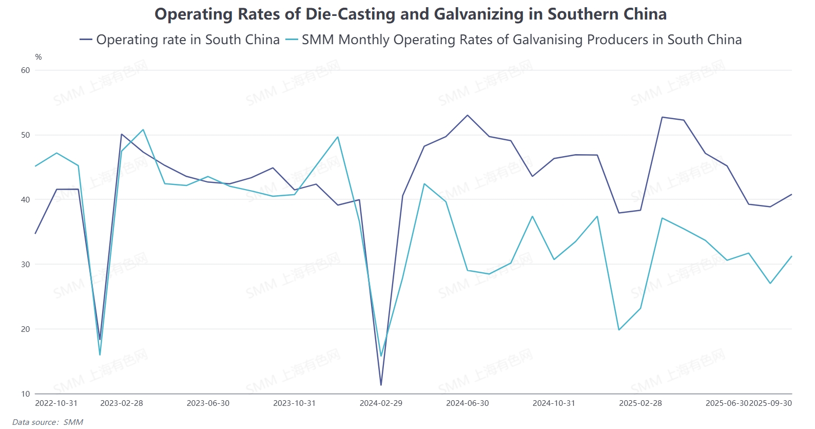 Demand side, Guangdong is home to a large number of die-casting zinc alloy plants and a small number of galvanizing enterprises. As two major segments accounting for a significant share of zinc consumption, the operating rates of die-casting zinc alloy and galvanizing in South China both fell short of the same period last year in September, down 2.75 percentage points and 6.14 percentage points YoY, respectively.