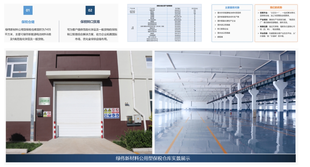 LvWei New Material's bonded business primarily provides safe, efficient, and convenient "one-stop" transaction services for new energy battery material industry clients, including bonded warehousing, transit trade, logistics, and customs clearance.