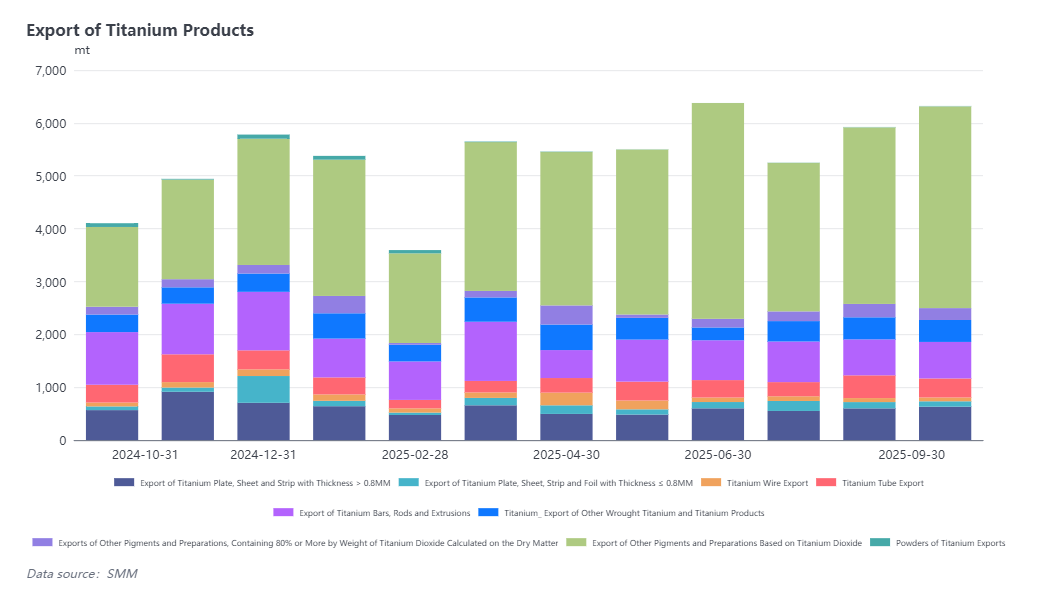 In September, Chinese titanium industry exhibited a combination of overall growth and internal divergence in imports and exports. On the upstream raw material side, titanium ore imports reached 447,400 tons, a month-on-month increase of 8.16%, with robust demand driven primarily by the price advantage of imported ore and expanded production in the downstream titanium dioxide industry. On the midstream product side, titanium dioxide exports grew 12.68% month-on-month to 156,300 tons, reflecting the peak season effect. However, cumulative exports still declined by 6.48% year-on-year, indicating that while supply gaps overseas created opportunities, anti-dumping measures and weak downstream demand continued to constrain overall demand. During the same period, sponge titanium and titanium product exports grew by 26.68% and 6.78% month-on-month, respectively, but the market showed significant polarization, with strong demand in high-end sectors like aerospace, while the civilian market faced pressure from high inventory and expanded production capacity.