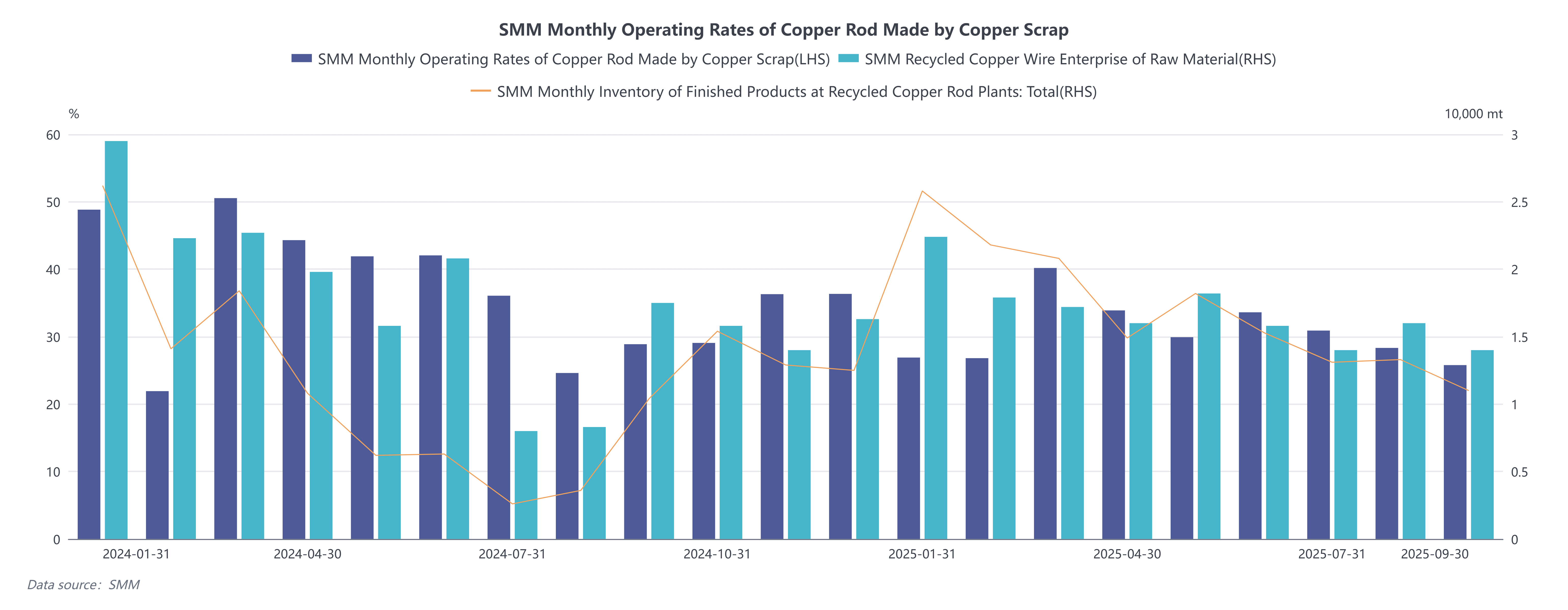 Changes also emerged in the import market. Imports of recycled copper raw materials increased by 2.63% MoM to 184,100 mt in September, but heightened customs inspections extended clearance periods by 15–30 days, further constraining raw material supply efficiency. It is noteworthy that the secondary copper rod industry has demonstrated resilience: it has partially offset the impact of policies through regional coordination (order transfers) and adjustments in raw material structure (increasing the proportion of invoiced raw materials). In the future, the industry may develop a dual structure of "policy-compliant zones" and "cost-advantaged zones," where technological innovation and resource integration capabilities will become key factors for enterprises to break through.