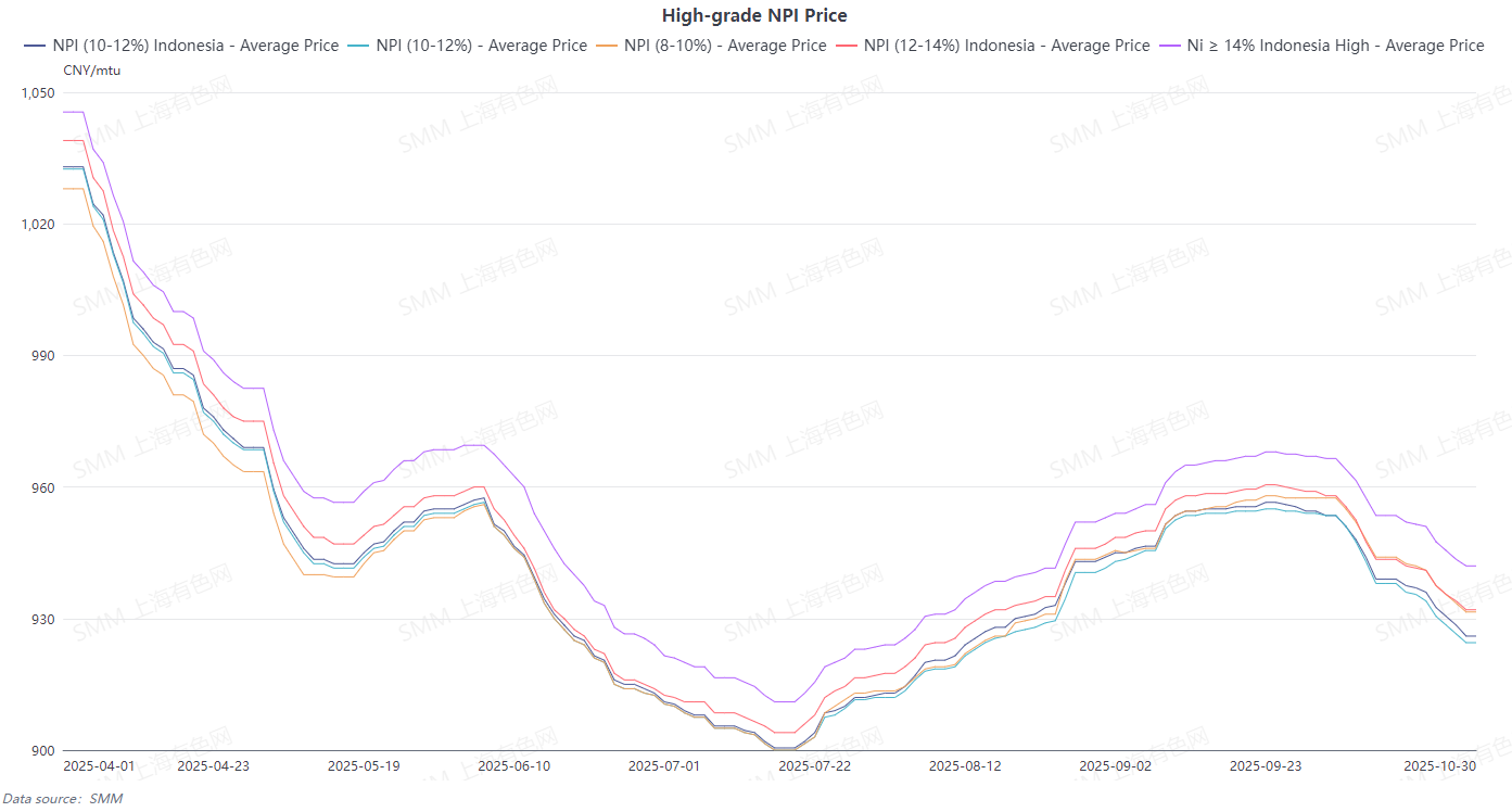 Overall, the high-grade NPI market is experiencing an increase in supply, a decrease in demand, and ample inventory, indicating a short-term supply surplus. In terms of economic substitution, for downstream users, the cost per mtu of stainless steel scrap is about 20 Yuan/nickel unit lower than that of high-grade NPI. On the cost side for downstream sectors, stainless steel enterprises are facing losses, leading to a lower acceptance ceiling for high-grade NPI prices. Therefore, although the decline in high-grade NPI prices has slowed down under current cost support, given the weakening fundamentals and the significant economic substitutability of stainless steel scrap, high-grade NPI prices are still expected to have further downside room.It is expected that high-grade NPI prices will remain in the doldrums in Q4 2025, but will stabilize and rebound in the long term with cost support.